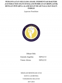 PEMANFAATAN SELULOSA HASIL FERMENTASI BAKTERI ACETOBACTER XYLINUM DALAM PEMBUATAN BIOPLASTIK DENGAN PEWARNA ALAMI KULIT BUAH NAGA DAN DAUN INDIGO Laporan Penelitian