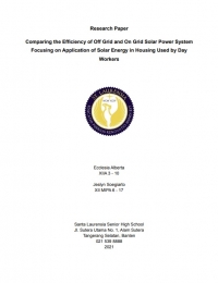 Comparing the Efficiency of Off Grid and On Grid Solar Power System Focusing on Application of Solar Energy in Housing Used by Day Workers - Tahun Ajaran 2021-2022